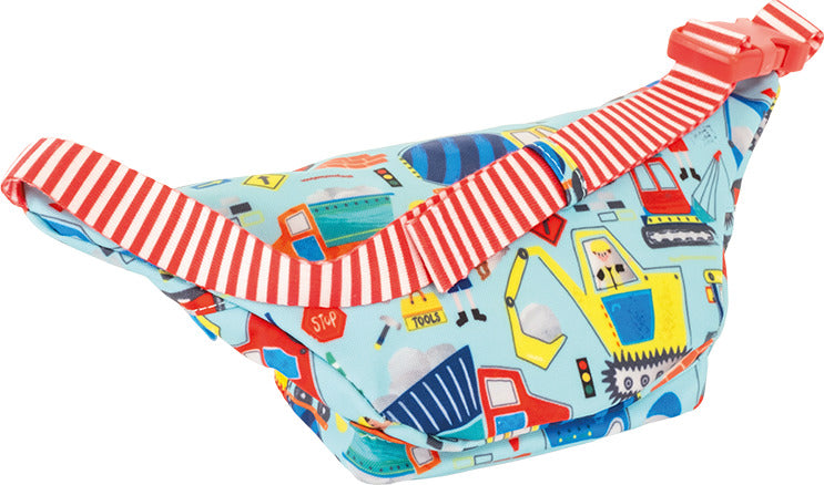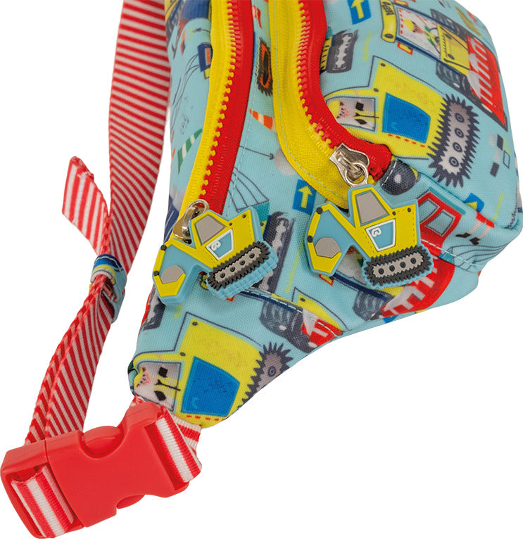 Floss & Rock's Construction design has two chunky, digger shaped zip pulls, two handy compartments and an adjustable strap in a gorgeous striped material. Inside the bag is a lovely Construction print and an 'I belong to…' label for personalization.