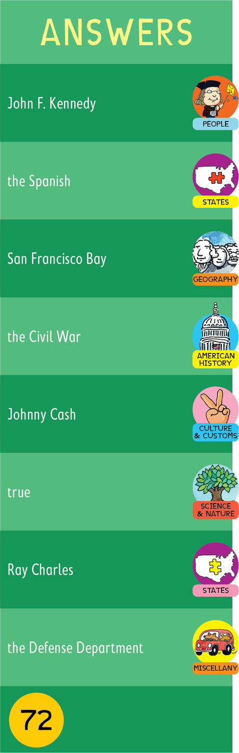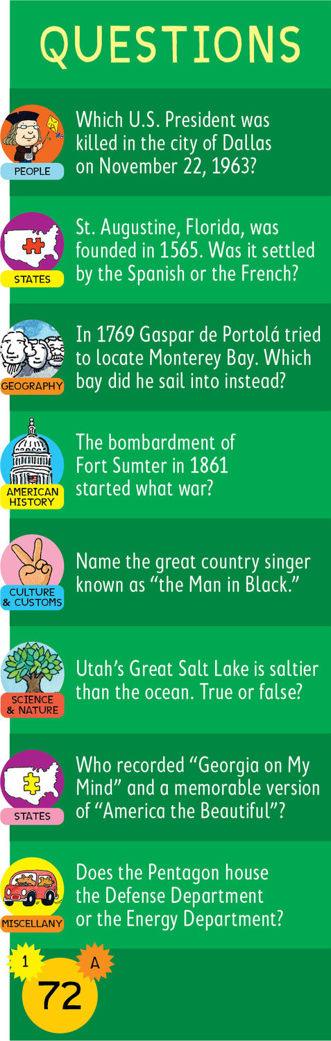- 1,100 questions and answers covering American history, geography, culture, and more