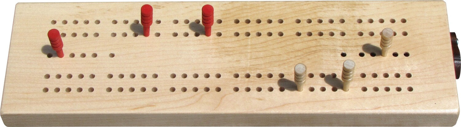 Our Standard Cribbage features a standard two street by 60 hole configuration, pegging out holes, game counter holes, and a closeable peg storage compartment on one end. Crafted from locally sourced sustainably harvested maple hardwood, Standard Cribbage measures approximately 3" wide by 10" long by 3/4" thick and includes pegs and instructions.