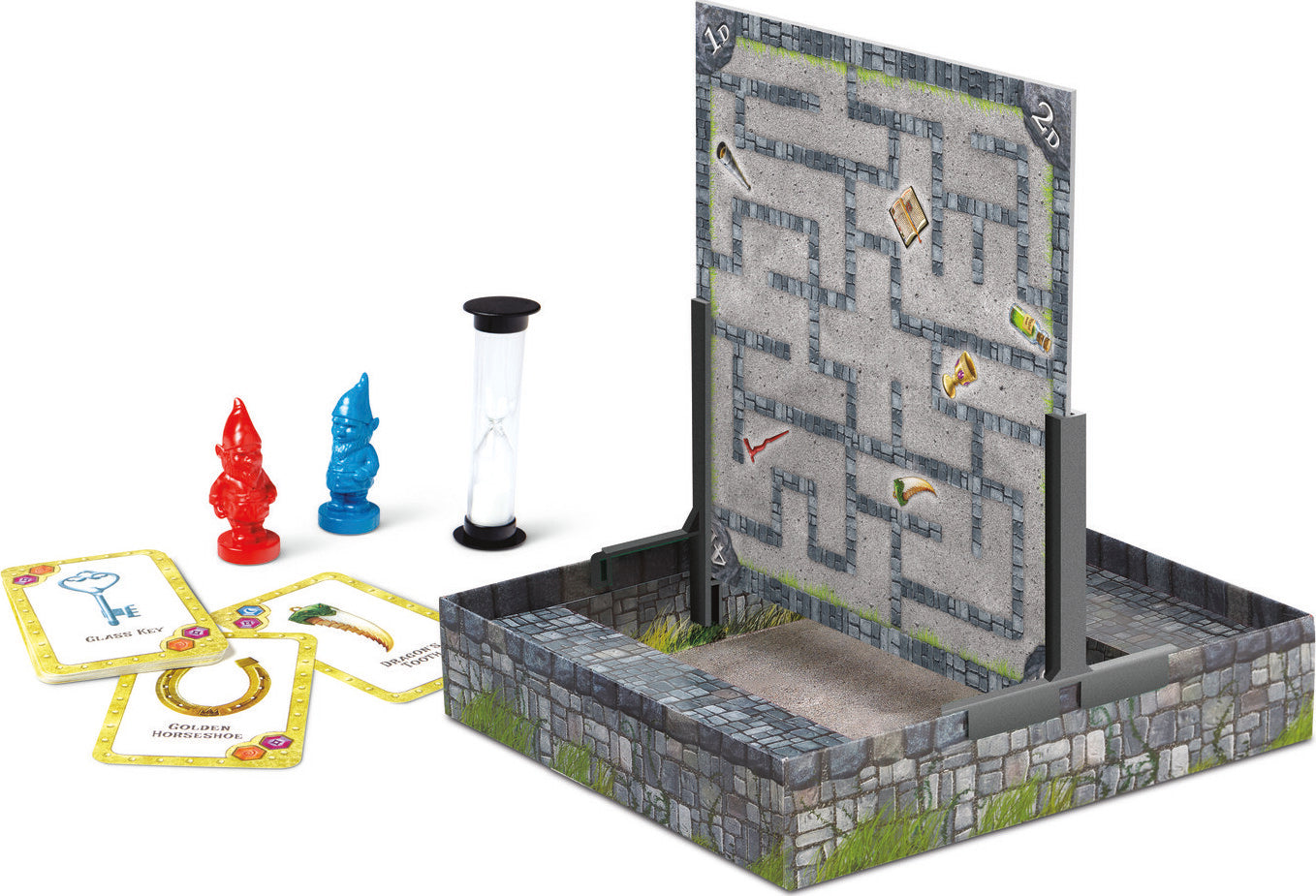 Someone has stolen the Queen’s treasures and has dropped them in the castle’s twisty maze. Luckily, the trusty gnomes are here to help! Players work together to maneuver the magnetic gnome movers around the mazes to collect all the treasures before time runs out. Use communication, strategy and quick thinking to find the treasures and win the game!