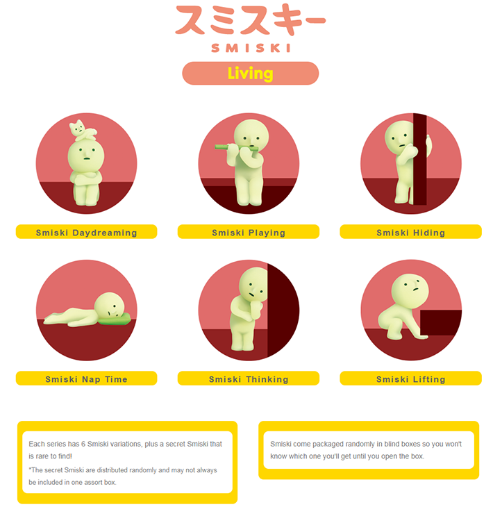 Each Smiski series consists of 6 different mini figures in "blind box" packaging. This means that you do not know which one you will get until you open the package. Each box contains one figure.