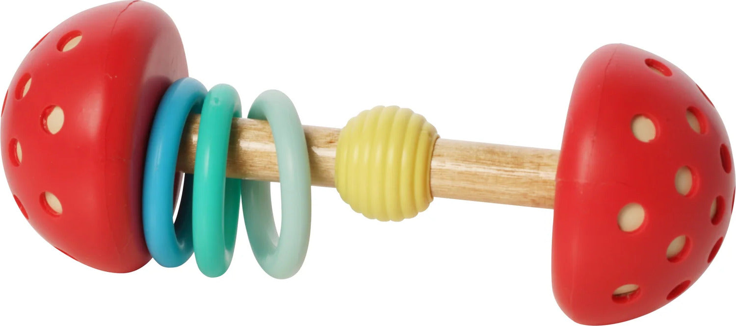 Satisfying curious hands and encouraging early teething is super easy with the Toadstool Twist & Shake baby toy. Produced with a beech wood dowel rod with securely fastened plastic ends, this easy-to-hold multicolor bar-bell shaped toy will keep kiddos busy during their earliest years.
